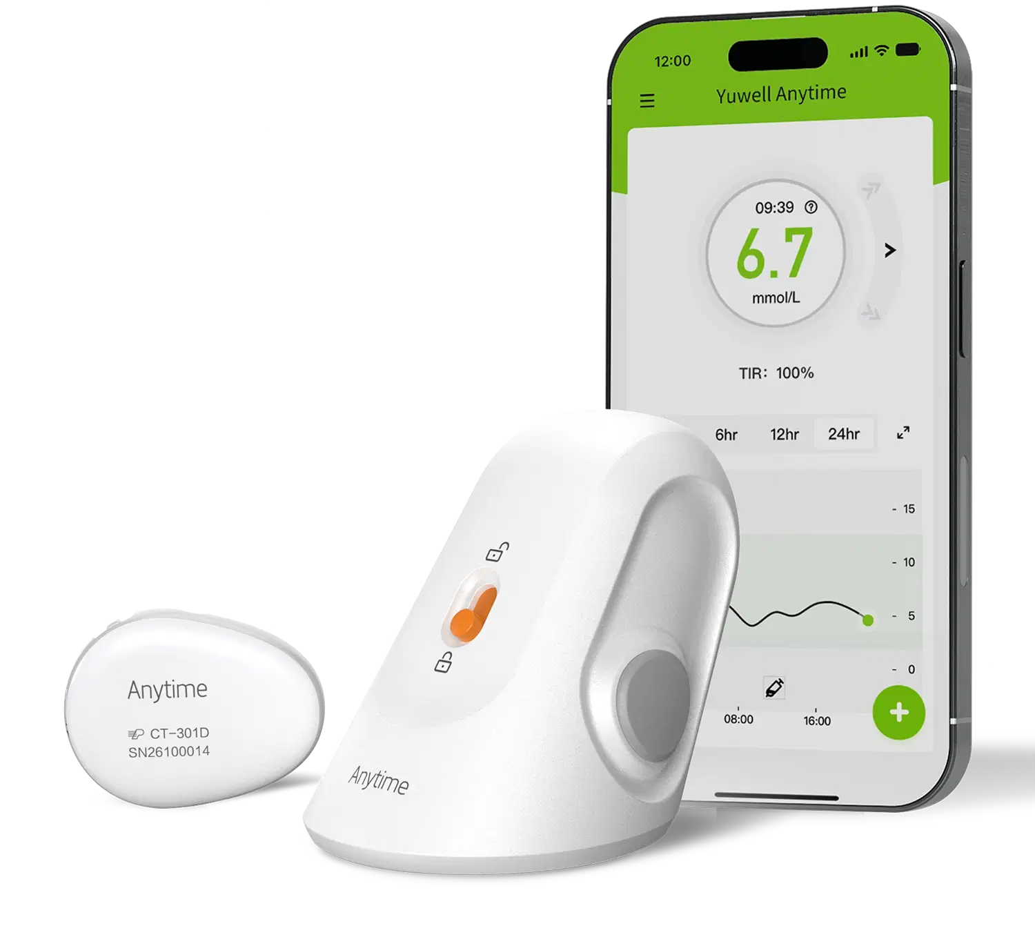 De CT3 Anytime is een geavanceerd continue glucosemonitoringsysteem (CGM) dat je bloedsuikerwaarden in real time meet via het interstitiële vocht (onder de huid). Het systeem bestaat uit een kleine, discrete sensor die op de huid wordt geplaatst en een gebruiksvriendelijke mobiele app die alle gegevens duidelijk weergeeft.