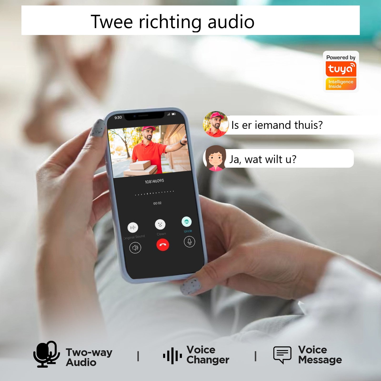 Altijd Weten Wie Belt: Zodra de bezoeker op de bel drukt, krijgt u direct een melding op uw smartphone via de Tuya Smart app. U ziet in 720P HD wie er is.